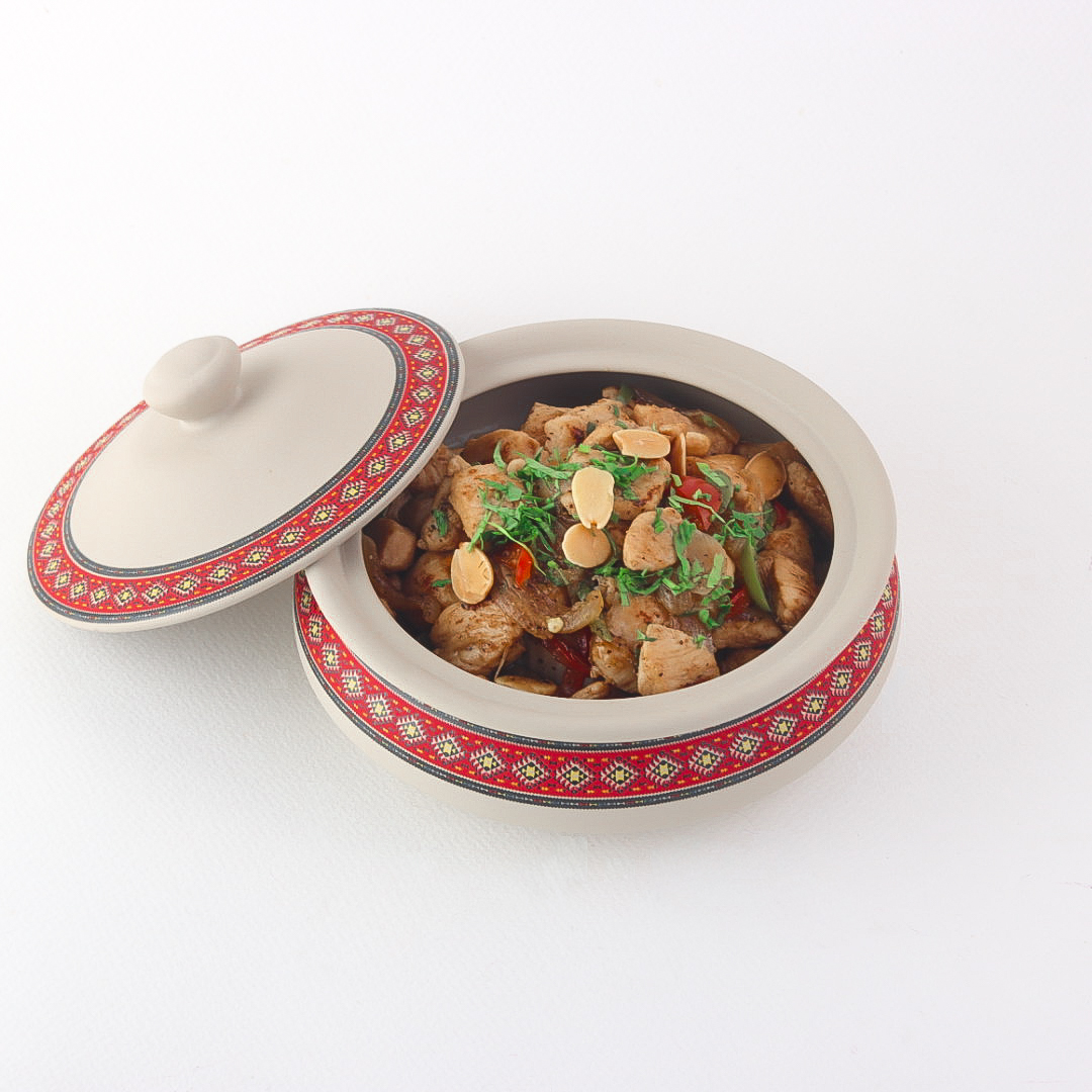 Fresh chicken cooked on a saj with rich spices and carefully selected vegetables for a flavorful experience.