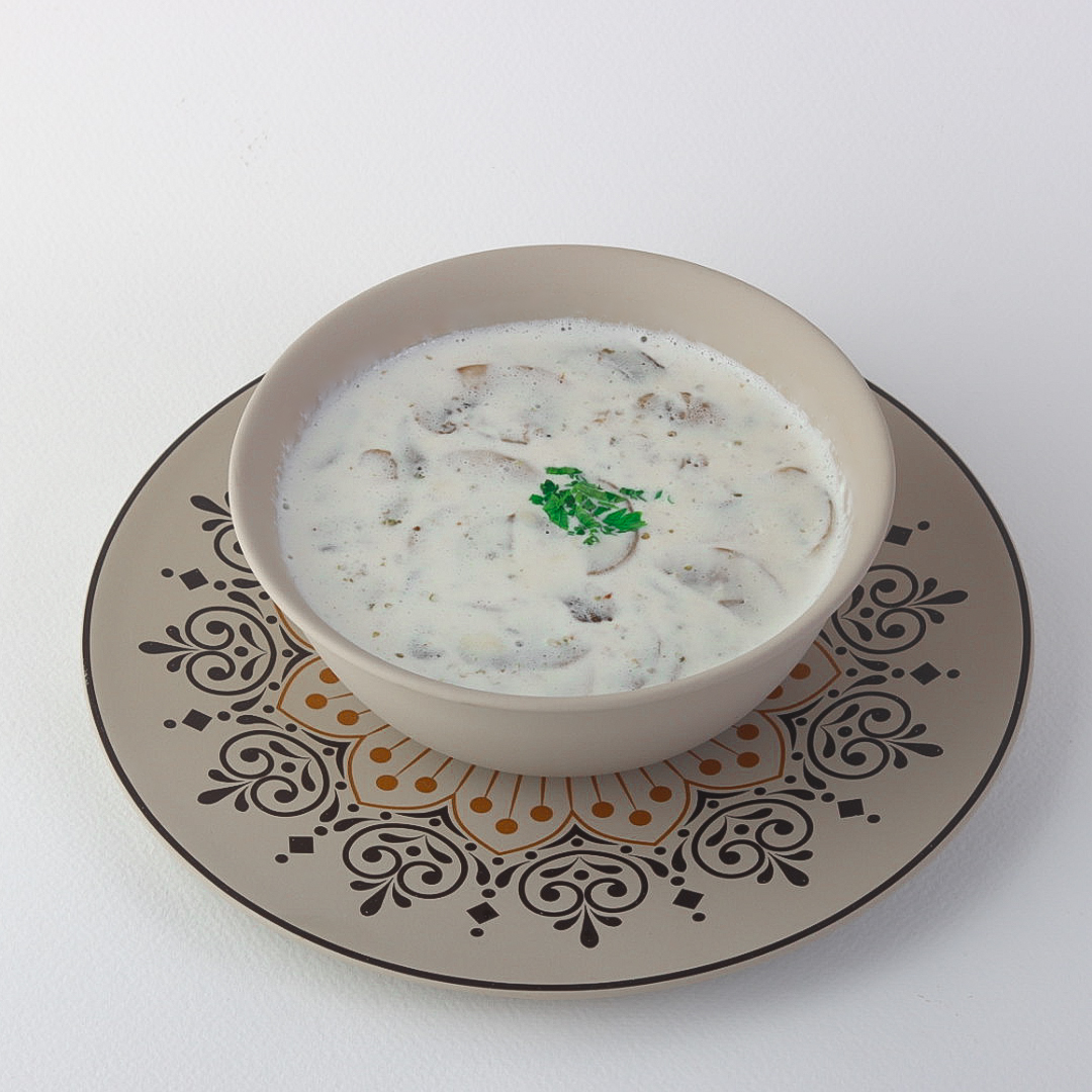 A premium soup made from carefully selected fresh mushrooms, cooked with smooth cream and enhanced with aromatic herbs. Served with a velvety texture and refined flavor.