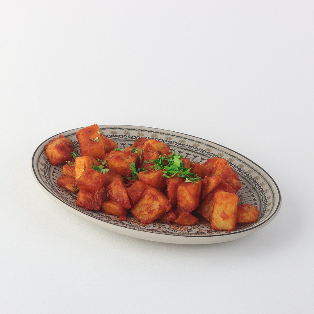 A perfect blend of freshly fried potatoes seasoned with hot spices that awaken the senses, served with a touch of virgin oil and fresh lemon for a rich, spicy flavor experience.