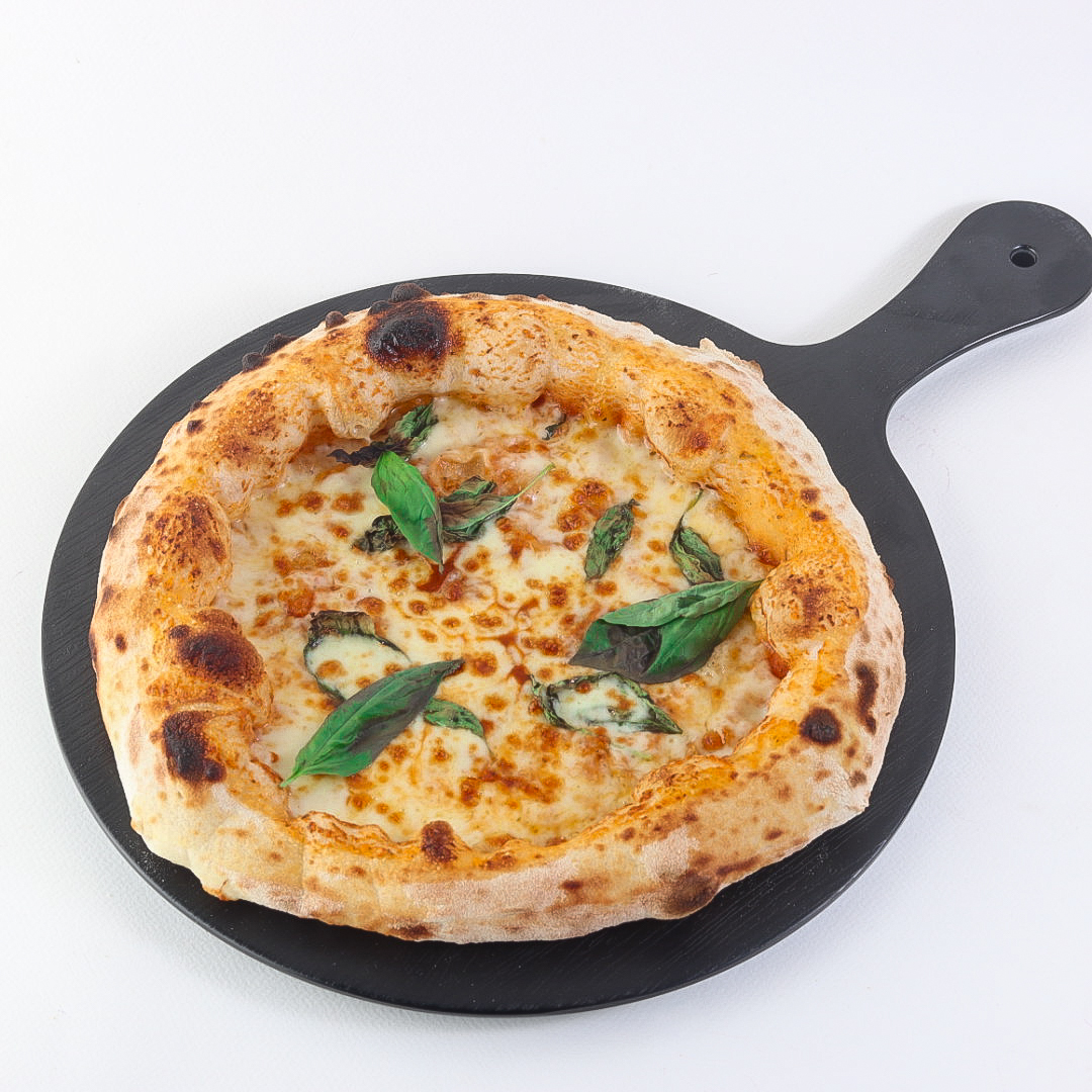 Soft and crispy dough topped with fresh Italian tomato sauce, premium mozzarella cheese, and fresh basil leaves.