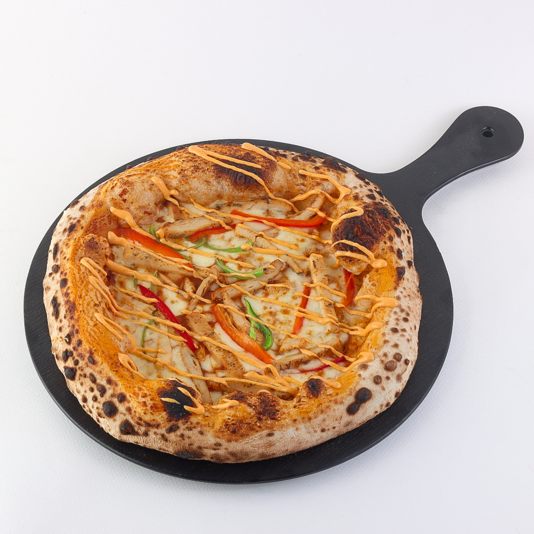 Light and crispy dough topped with spicy tomato sauce, premium mozzarella cheese, and grilled chicken pieces seasoned with hot spices.
