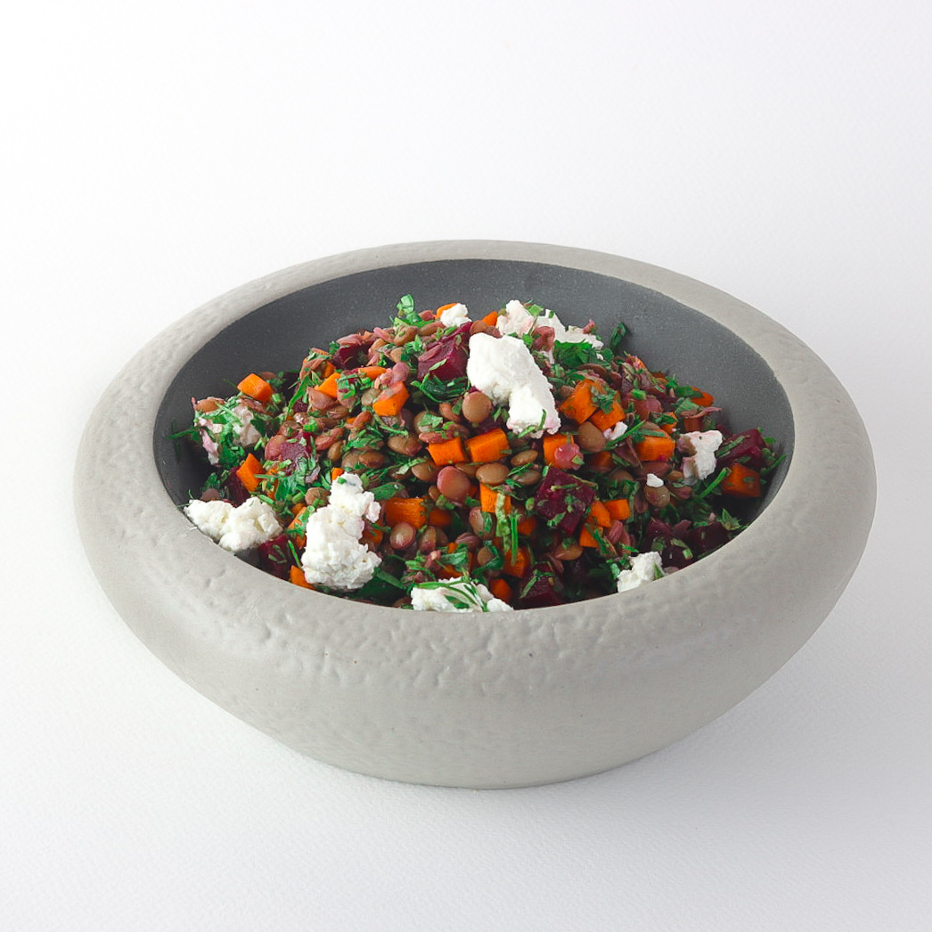 A premium mix of fresh beetroot, rich lentils, and feta cheese, garnished with carrots and fragrant parsley.