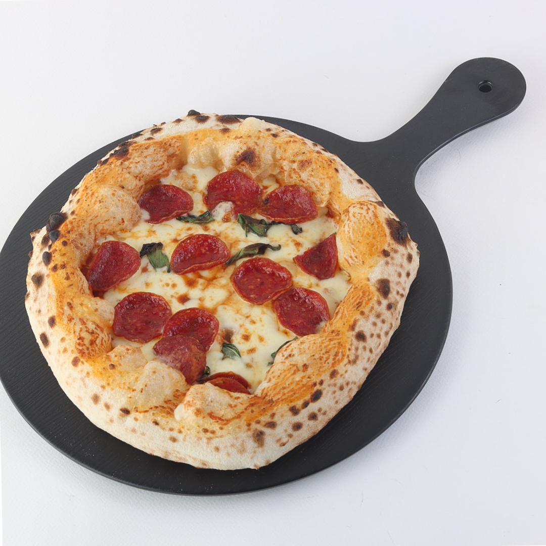 Light and crispy dough topped with Italian tomato sauce, premium mozzarella cheese, and smoked pepperoni slices for a rich and distinctive flavor.
