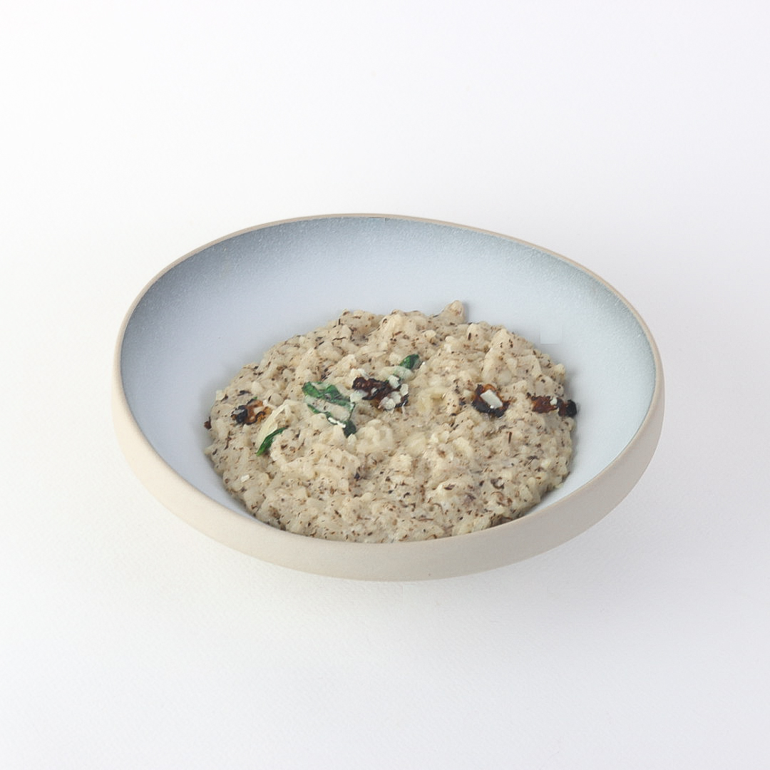 Rich, creamy rice cooked to perfection and infused with premium black truffle oil for a deep and distinctive flavor, topped with fresh Parmesan shavings for an elegant dining experience