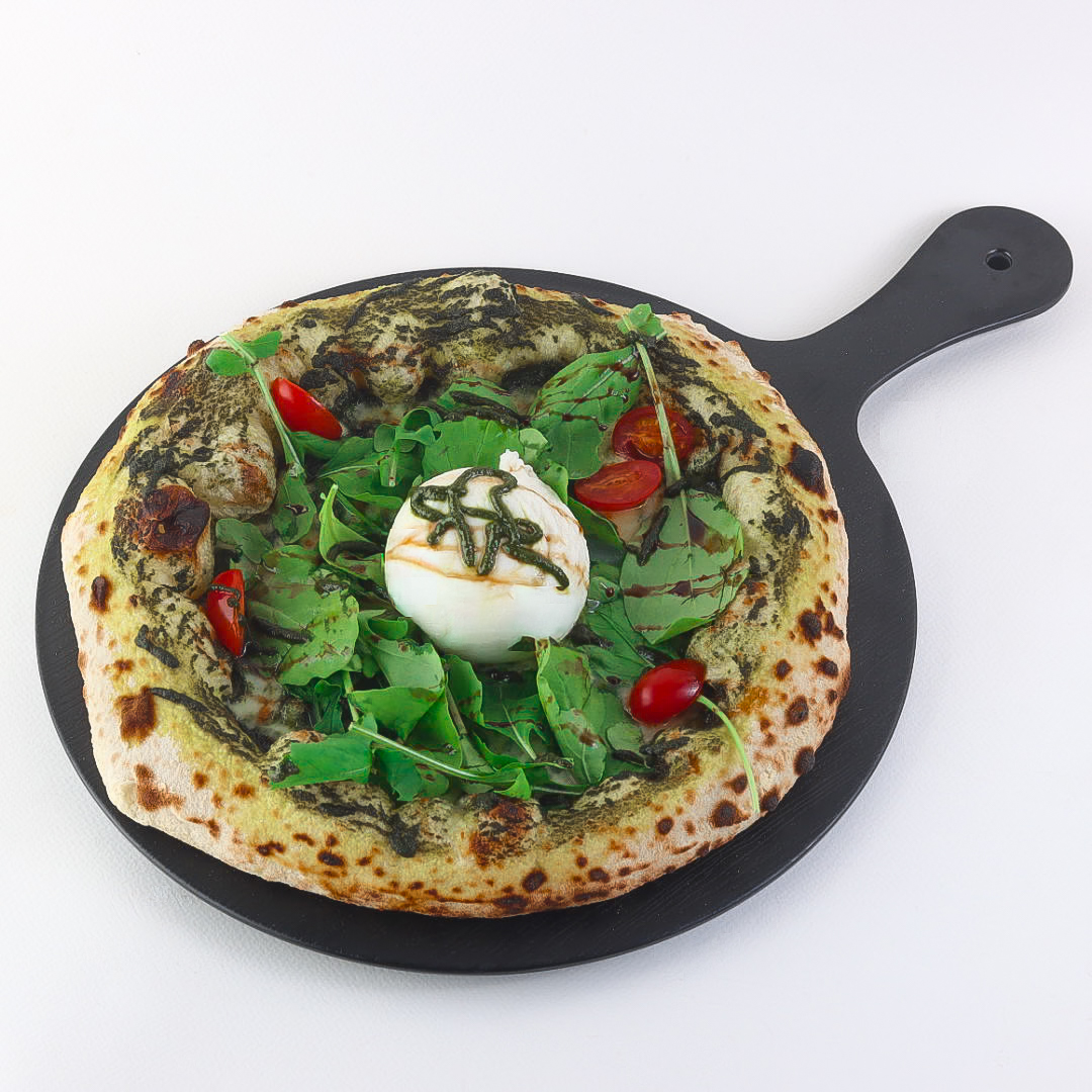 Light and crispy dough topped with luxurious burrata cheese known for its rich creamy texture and distinctive flavor, with a touch of premium Italian tomato sauce and extra virgin olive oil.